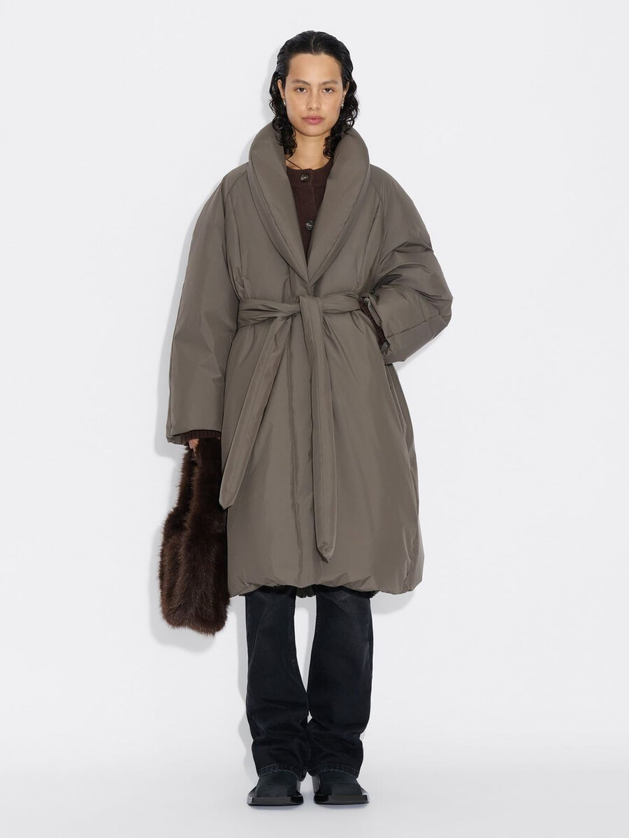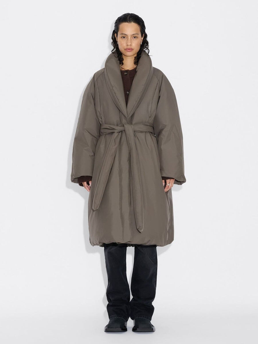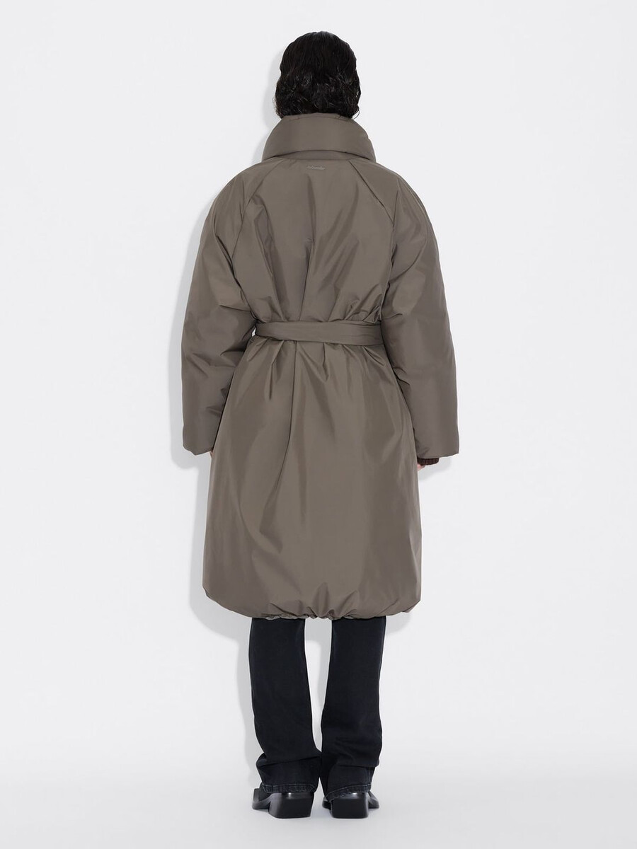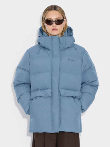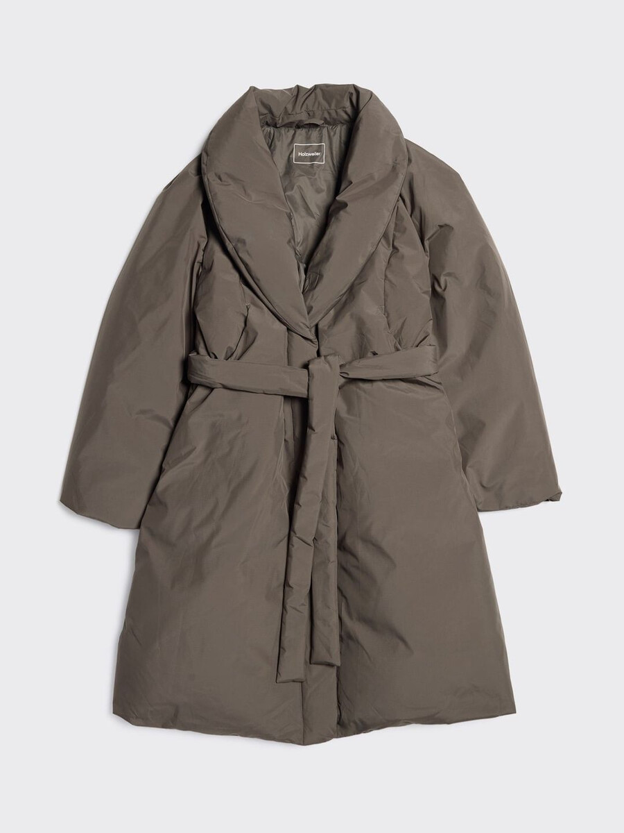 Il piumino lungo Vikki ha un orlo sotto il ginocchio che lo rende adatto sia per il giorno che per la sera. Imbottito con piumino certificato RDS, è realizzato in tessuto idrorepellente e presenta un collo a scialle, maniche raglan, numerose tasche, una cintura rimovibile con lacci e una discreta stampa del logo sul retro del collo.
