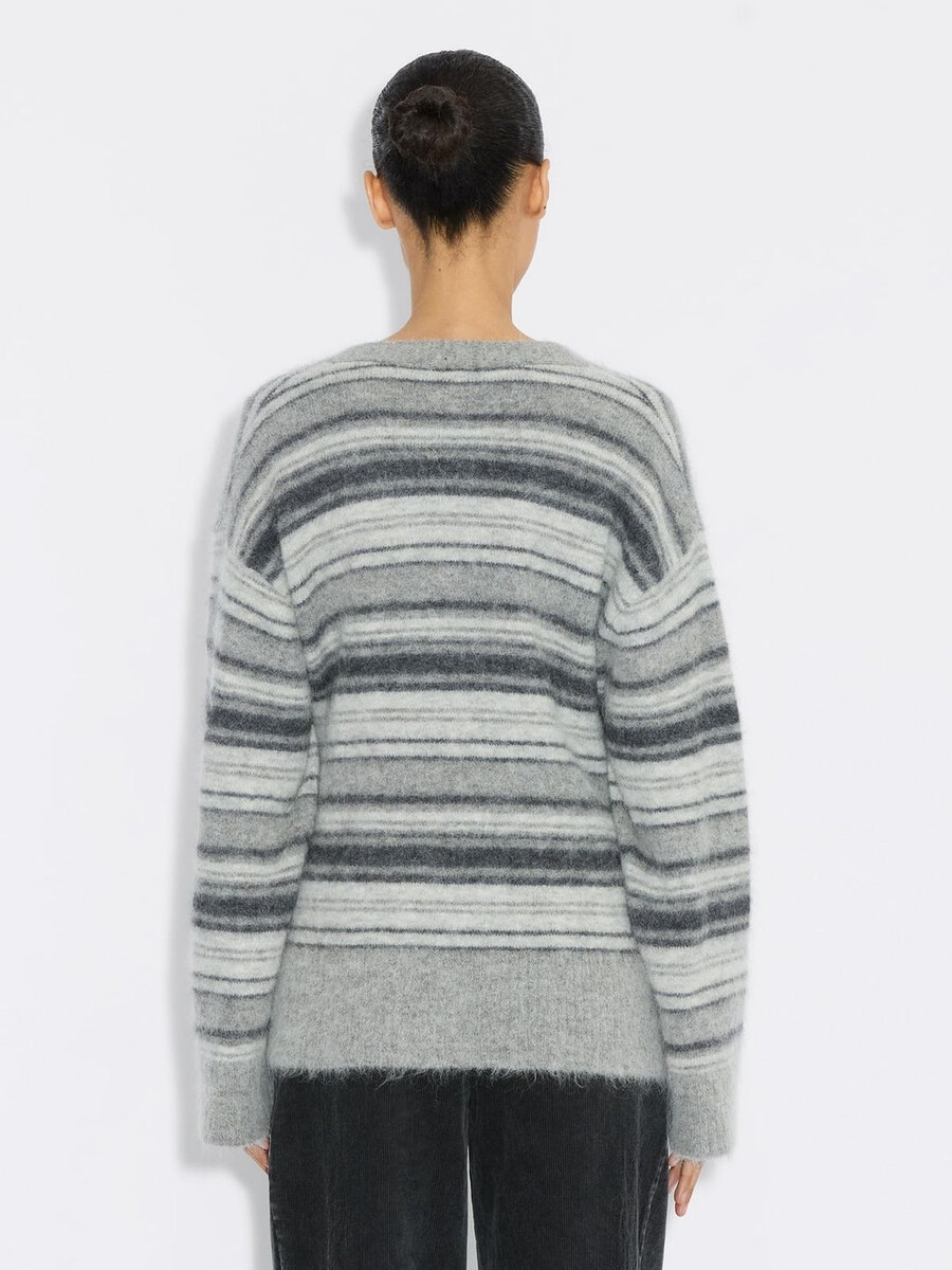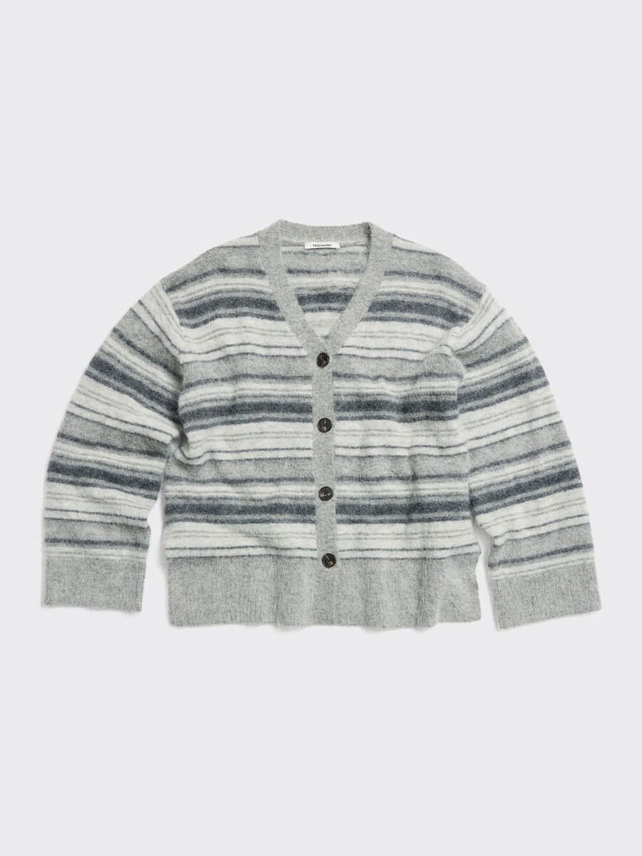 Il cardigan Fluffy Stripe ha una linea comoda in un morbidissimo misto alpaca, che dona una sensazione di lusso sulla pelle. Questo intramontabile capo in maglia presenta bottoni con logo, che consentono di indossarlo a strati o da solo. Con un’elegante riga disinvolta, è l’aggiunta perfetta al tuo guardaroba di maglieria per combattere il freddo.