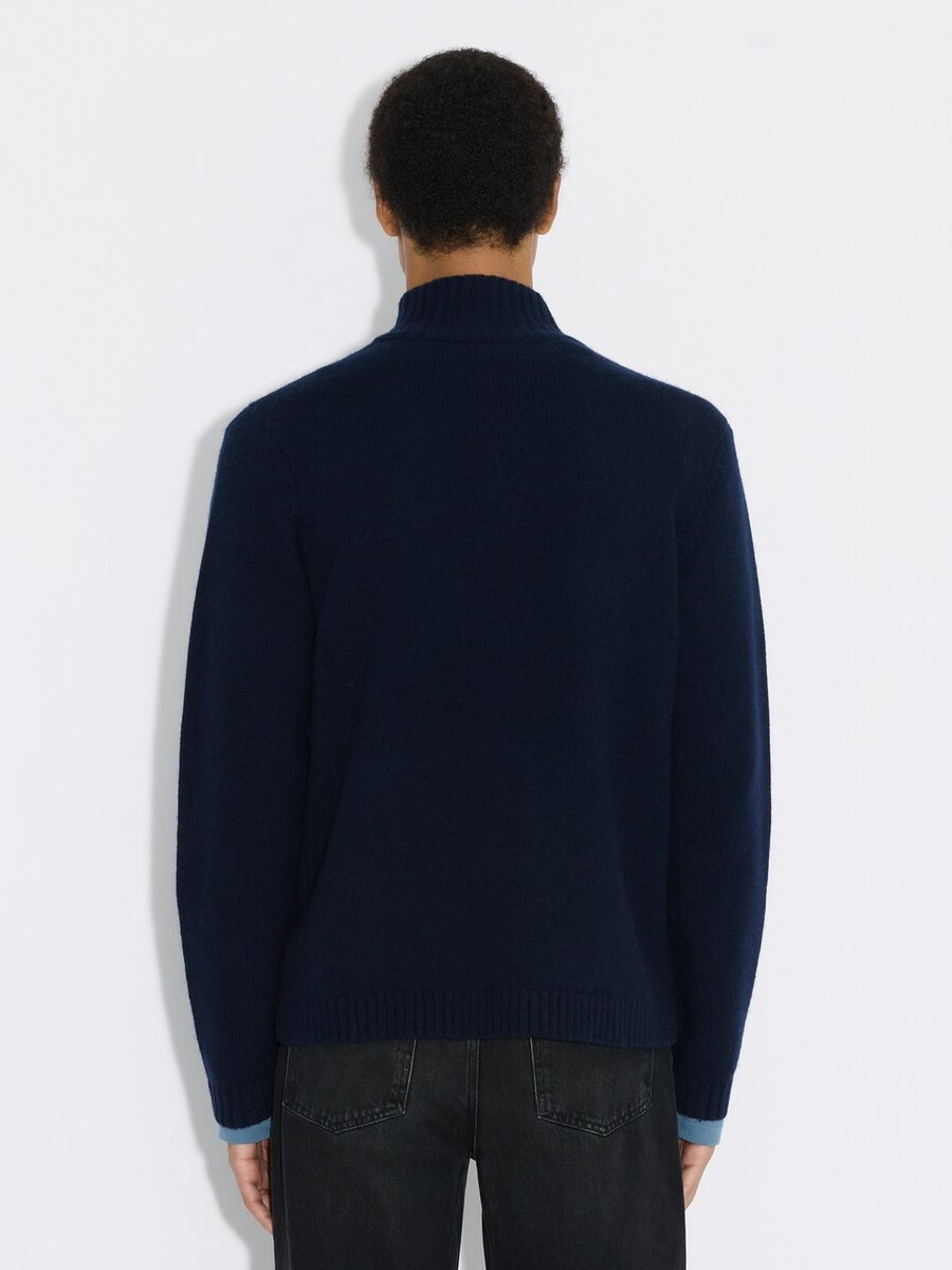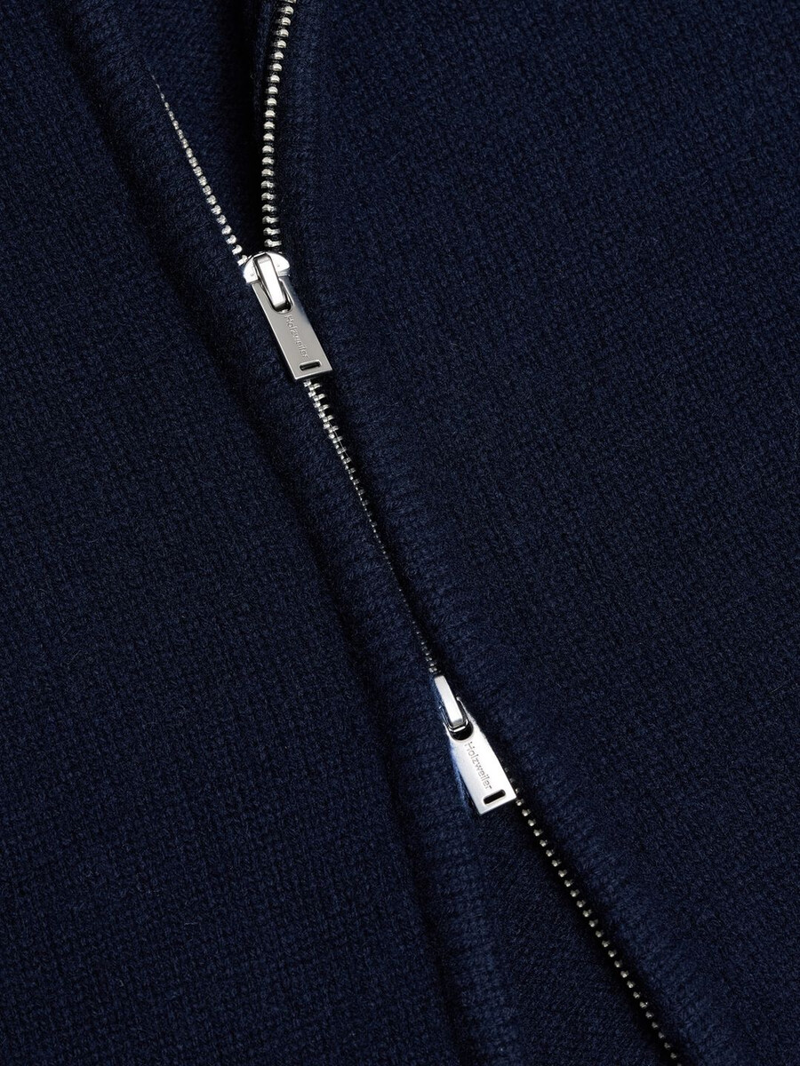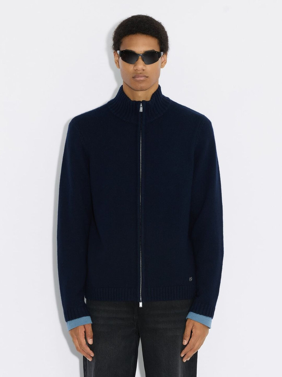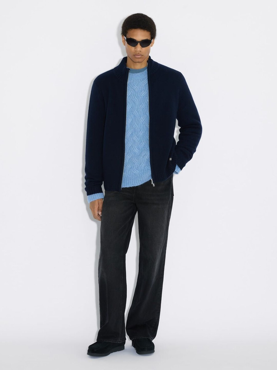 Ispirato alla natura, perfetto per ogni occasione, il cardigan in lana con zip presenta un’esclusiva tonalità salvia terrosa. Questo cardigan dalla vestibilità comoda presenta una zip frontale e offre due capi in uno: un capo comodo da indossare sopra i look di tutti i giorni o il punto focale di un outfit. Realizzato in pura lana, promette la massima morbidezza e calore grazie alla scollatura alta.