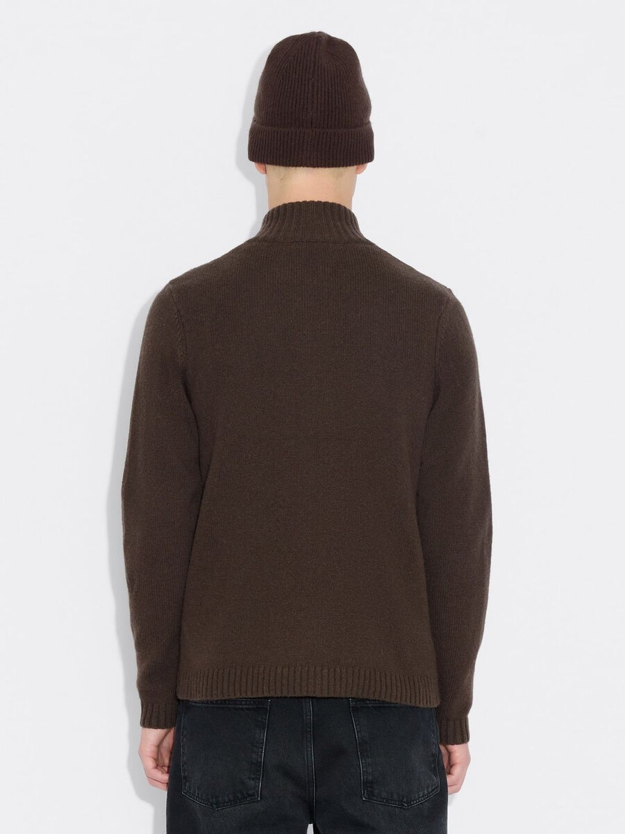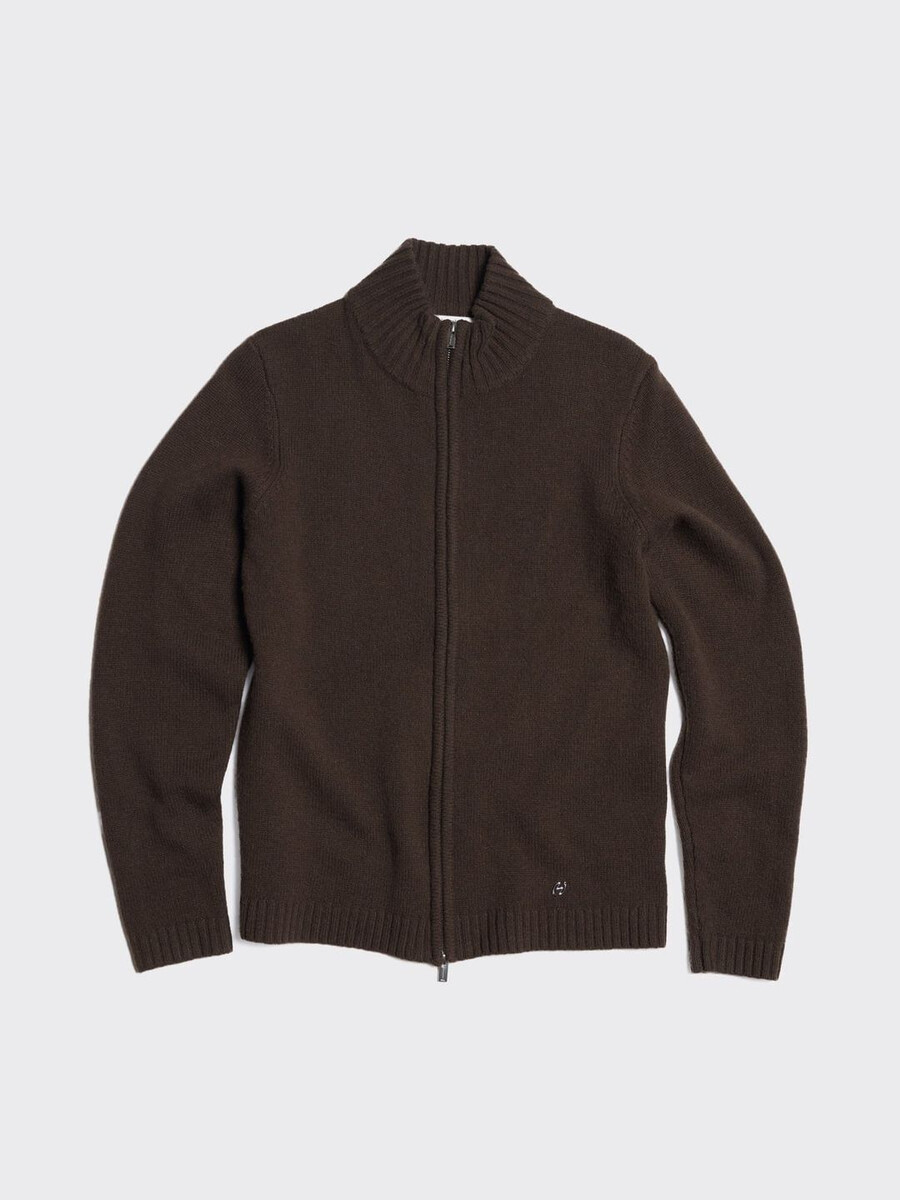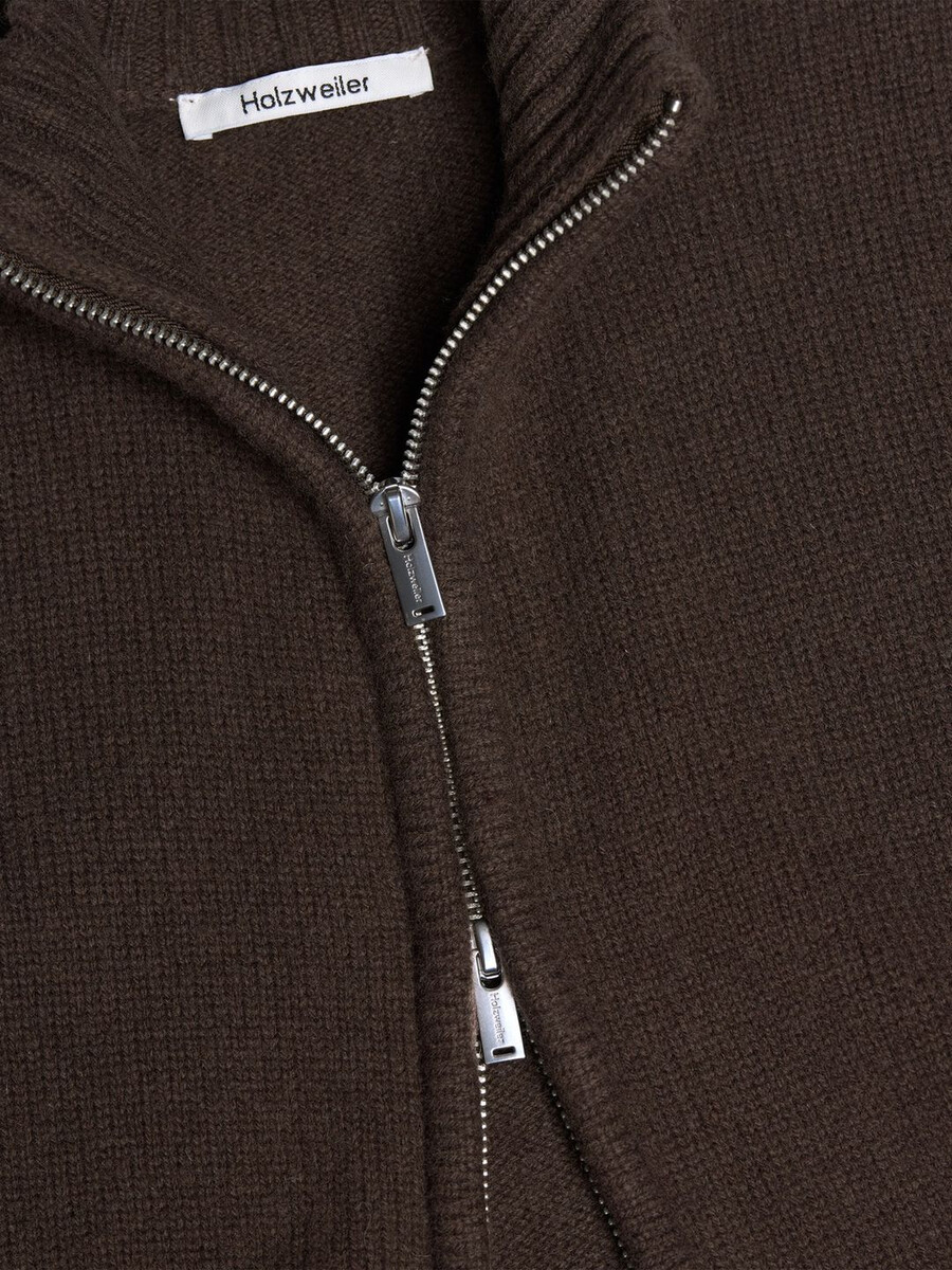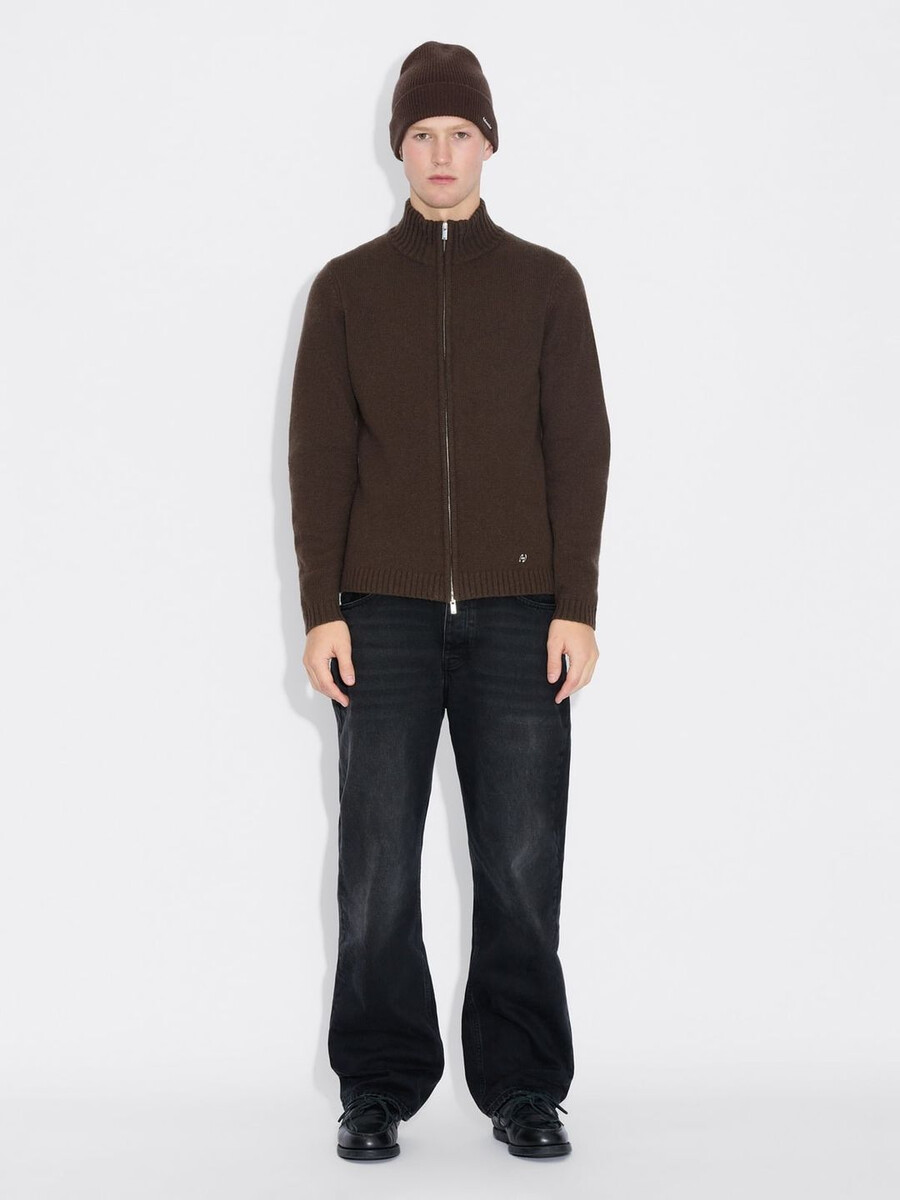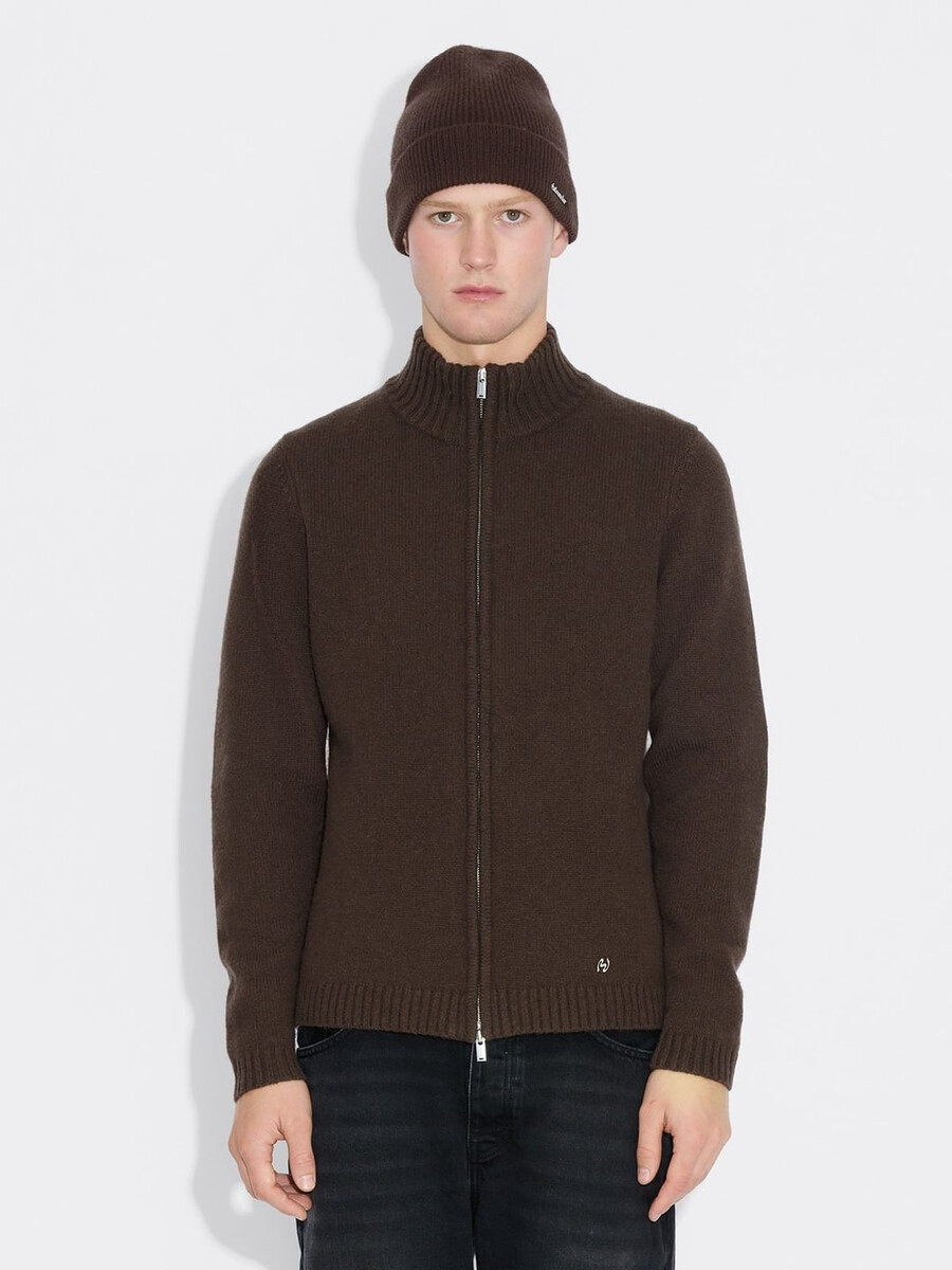 Perfetto per l’uso quotidiano, il cardigan con zip in lana ha collo alto, zip frontale, bordi a coste e logo in metallo sull’orlo.