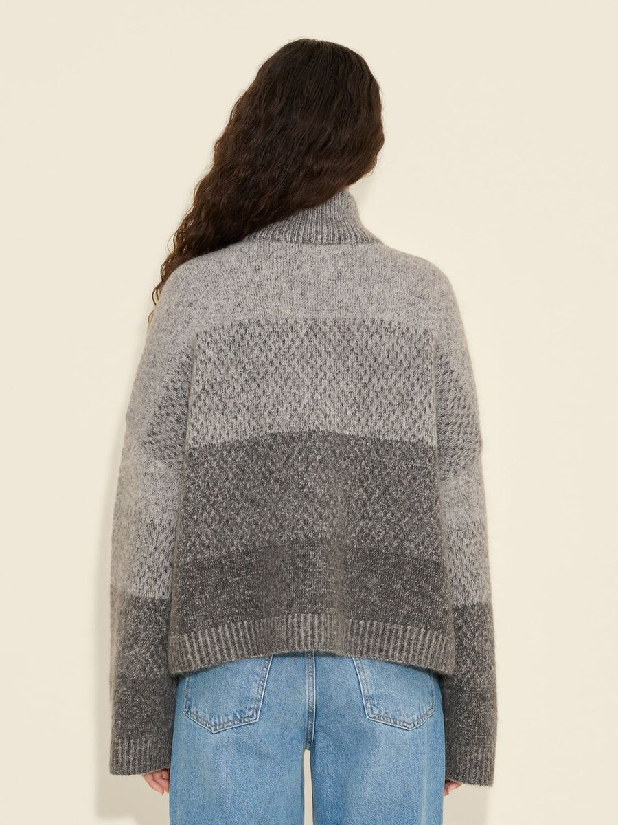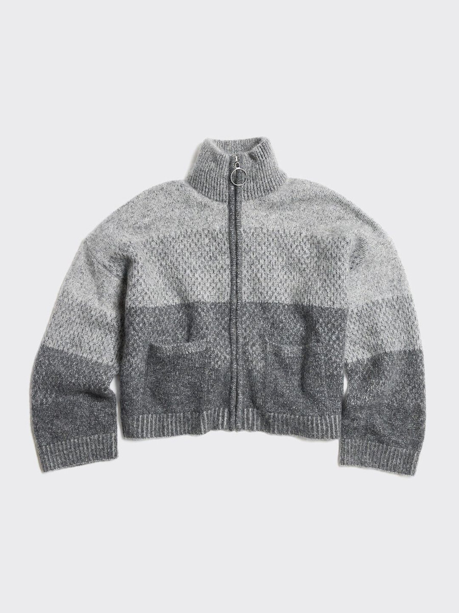Uno dei nostri modelli più amati, il cardigan Tine è realizzato in maglia spessa e isolante. Caratterizzato da zip frontale, collo alto e tasche a filetto, questo modello è caratterizzato dal suo motivo jacquard con effetto sfumato.