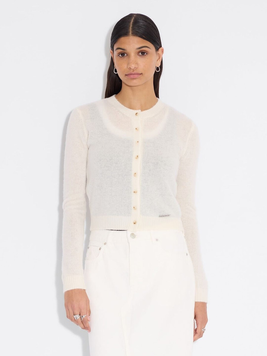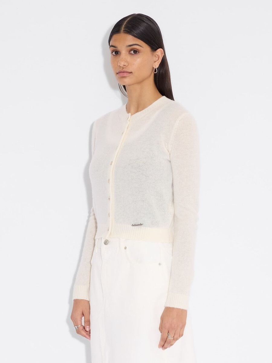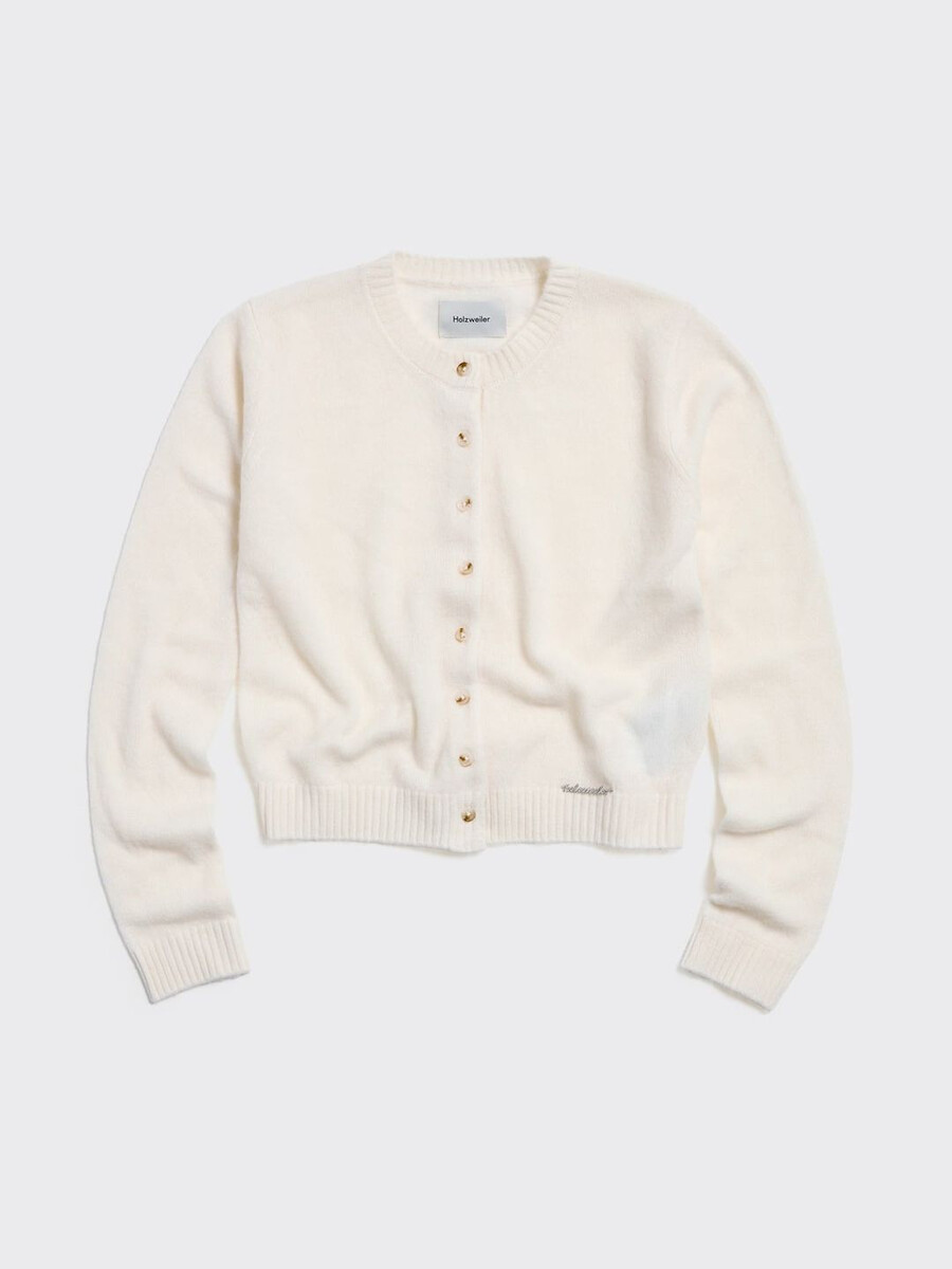 Realizzato in maglia fine, il cardigan in cashmere ha scollo rotondo, abbottonatura frontale e bordi a costine. È impreziosito da una placca con logo in metallo rimovibile sopra la vita.