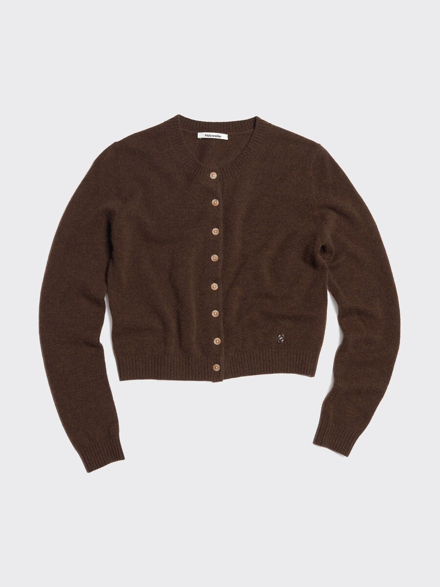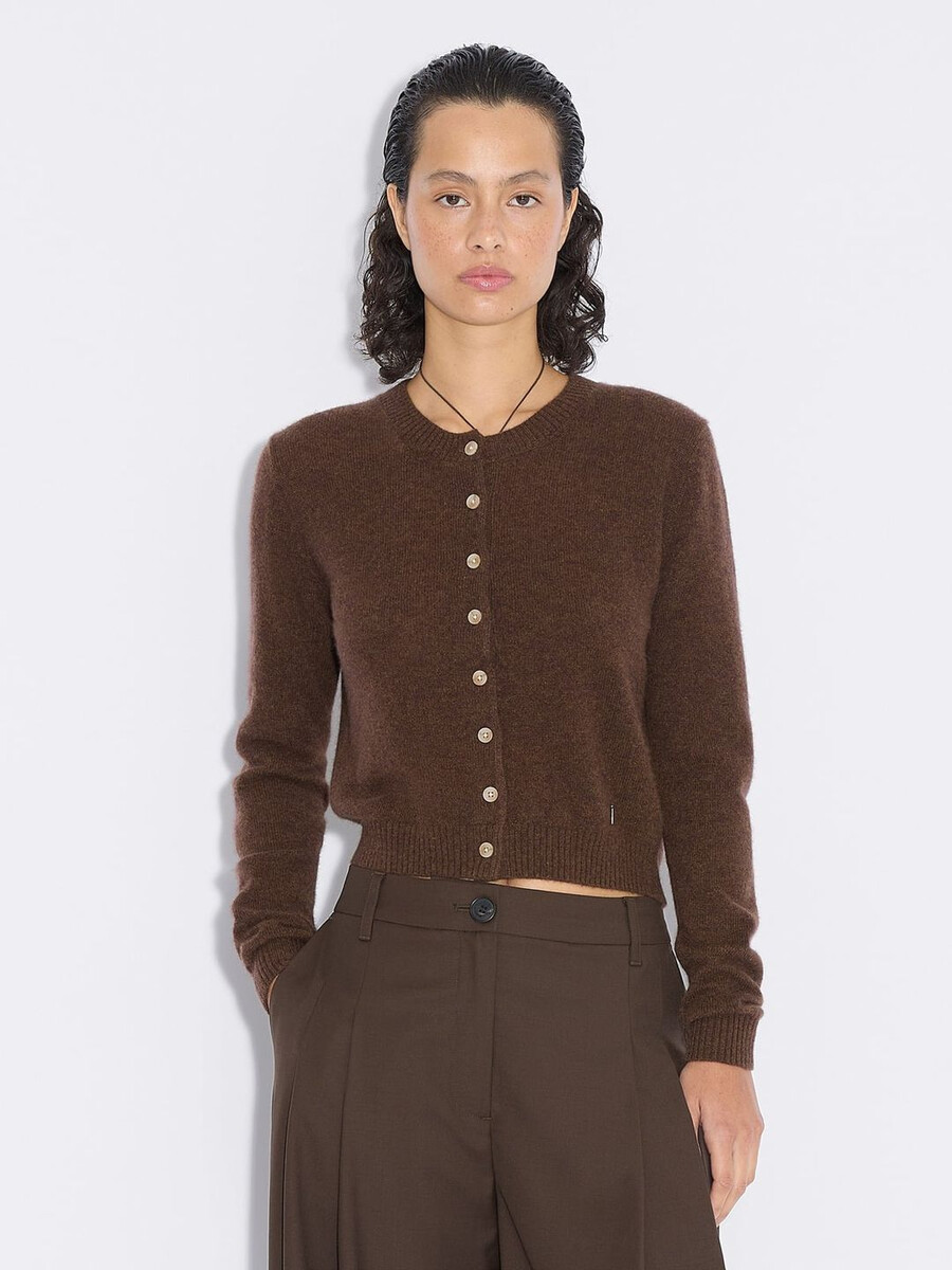 Realizzato in maglia fine, il cardigan in cashmere ha scollo rotondo, abbottonatura frontale e bordi a costine. È impreziosito da una placca con logo in metallo rimovibile sopra la vita.