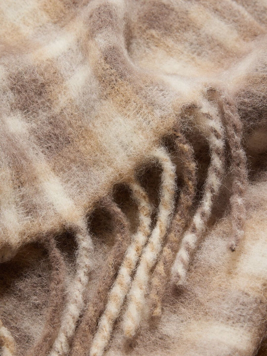 Abbiamo iniziato a realizzare le nostre sciarpe a Firenze dieci anni fa, quando ci siamo innamorati di una piccola fabbrica e delle tecniche tradizionali utilizzate. È qui che produciamo le nostre sciarpe ancora oggi. La nostra sciarpa Fresia è realizzata in un misto alpaca bouclé, piacevole al tatto. È rifinita con una stampa a quadri e bordi sfrangiati.
