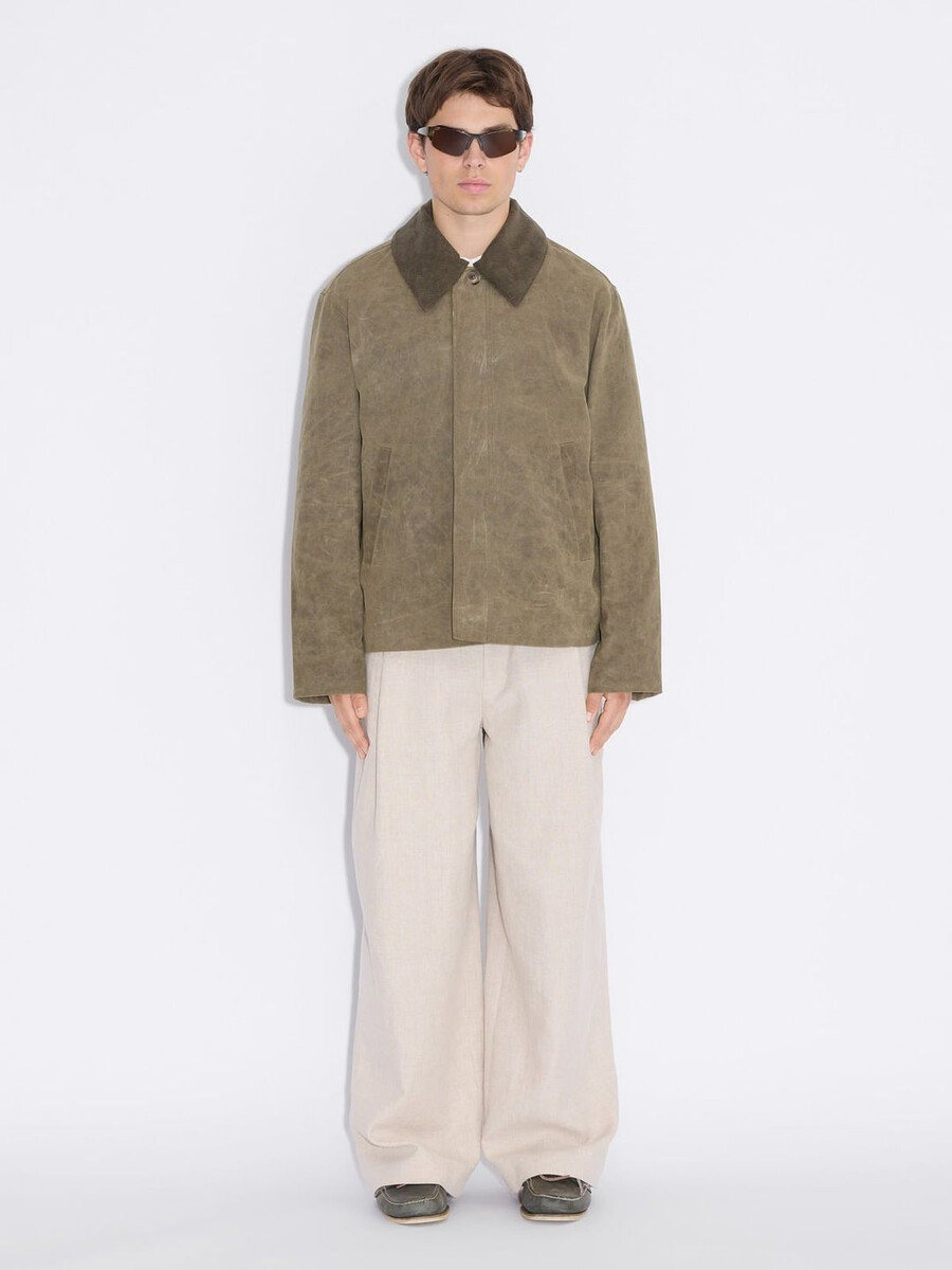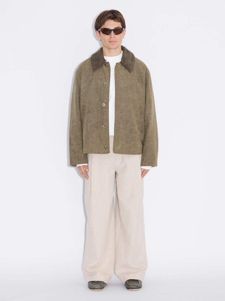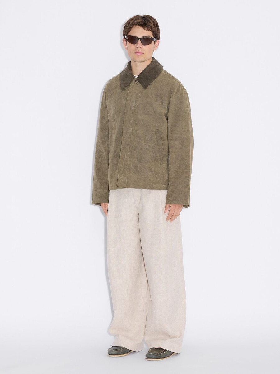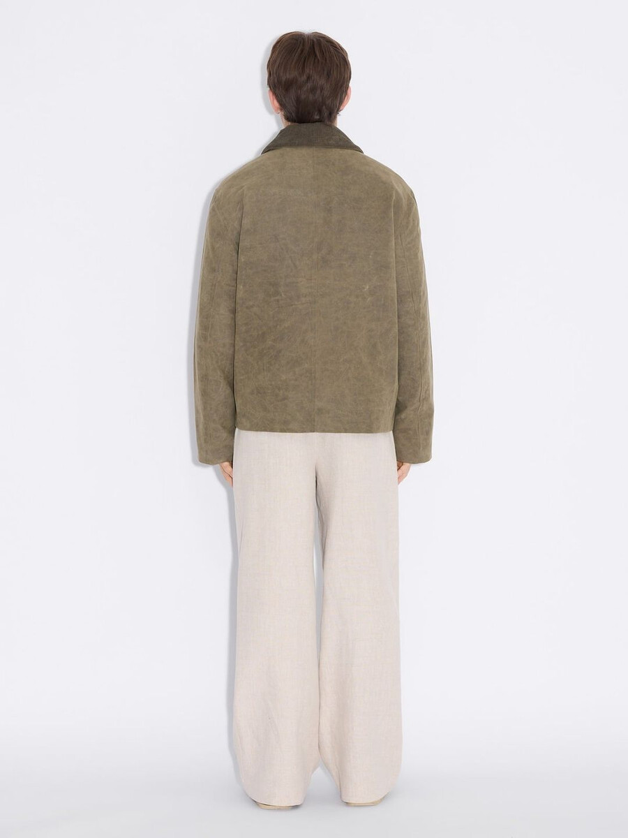 La nostra giacca corta Danni è rifinita con una finitura cerata che garantisce protezione dagli agenti atmosferici. Presenta tasche laterali e colletto rimovibile per uno stile versatile.