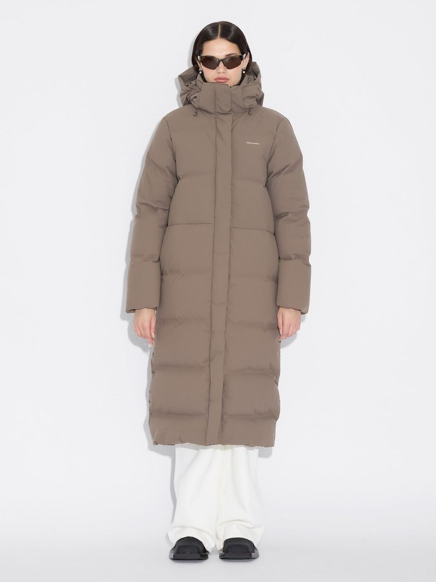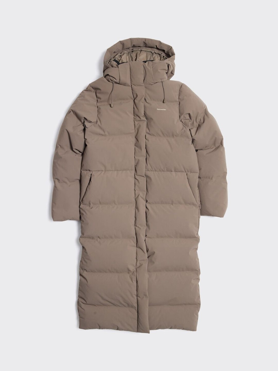 Realizzata in tessuto tecnico a strati, la giacca Glittertind Down è un modello lungo sotto il ginocchio, trapuntato e imbottito con piumino certificato RDS. È dotato di cappuccio staccabile, cerniera frontale bidirezionale, tasche laterali a fessura, tasca interna sul petto con cerniera e polsini aderenti.