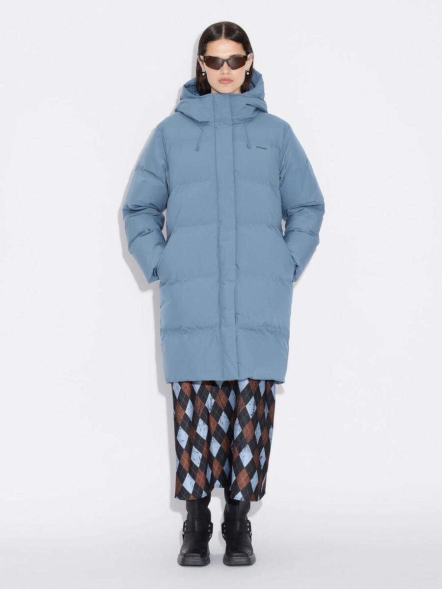 Il piumino Loen è il capo essenziale della nostra offerta di capispalla. Trapuntato e imbottito con piumino certificato RDS, questo modello di media lunghezza presenta un cappuccio con coulisse, polsini aderenti, tasche laterali e una tasca interna con zip sul petto.