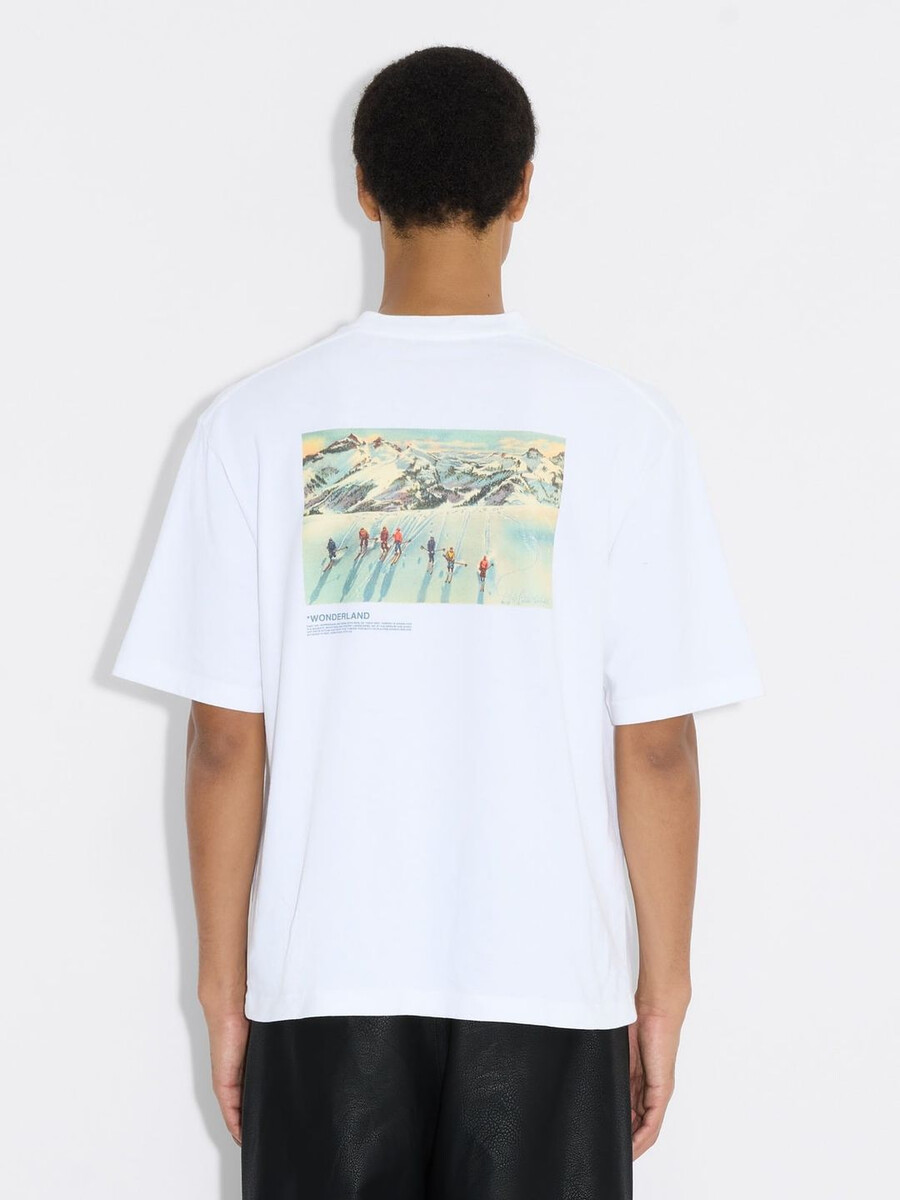 Il nostro esclusivo e amato motivo nazionale conferisce un tocco Holzweiler a una classica T-shirt dalla vestibilità comoda. Per la collezione “Winter Wonderland” Autunno/Inverno 2025, la stampa sulla Ranger National Tee rende omaggio allo spirito incantevole dell’inverno norvegese in montagna, ispirandosi alla bellezza incontaminata e alla magia di Krøttøya ricoperta di neve. Una rivisitazione di una cartolina d’epoca di una scena di sci di fondo, decorata con la scritta Holzweiler sulla neve.