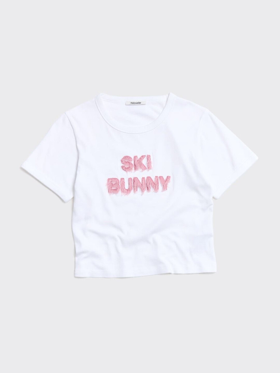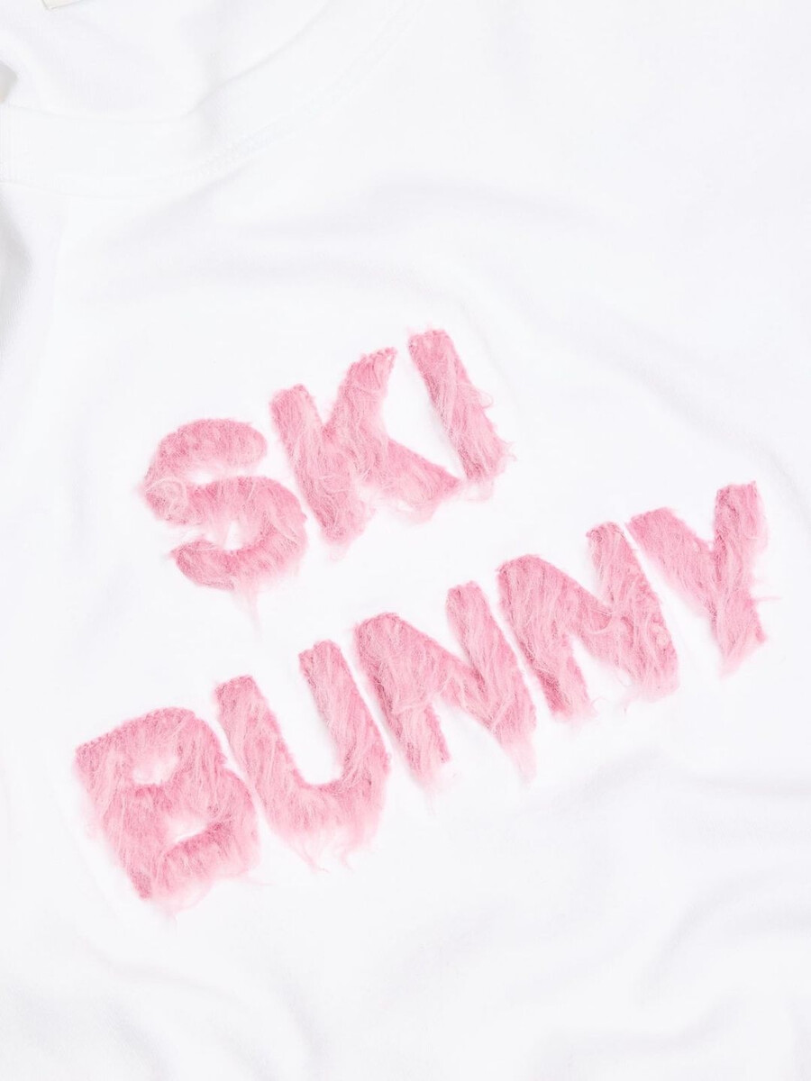 Una classica t-shirt bianca è un caposaldo di uno stile senza tempo. Questa è dedicata ai coniglietti sciatori, un modo semplice per fare una dichiarazione giocosa con un ornamento ispirato allo sci che sperimenta con la texture della pelliccia sintetica. La t-shirt Kitty Fluffy Ski Bunny è caratterizzata dalla stampa senza tempo e dalla silhouette aderente e corta. Questo capo essenziale per tutti i giorni è rispettoso del pianeta, realizzato in puro cotone biologico.