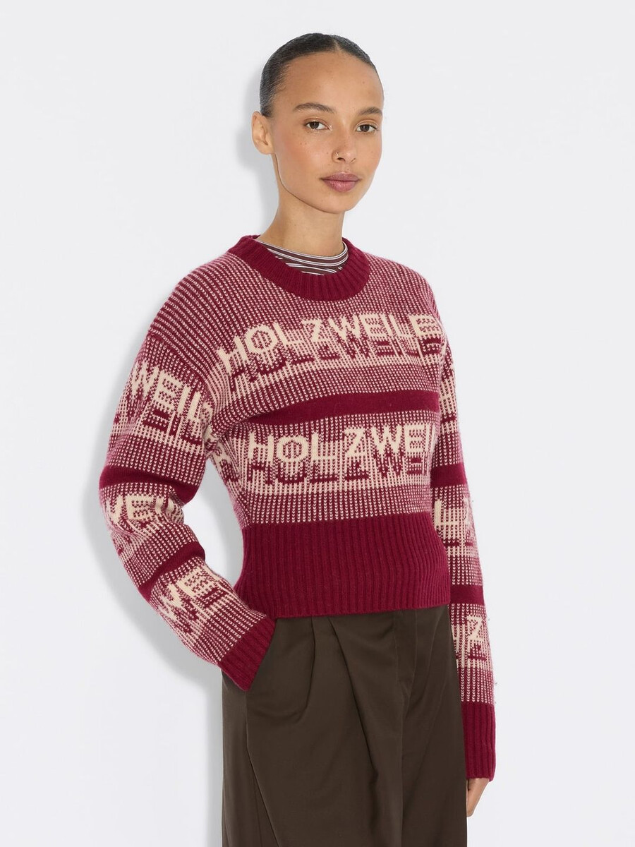Garantito per essere perfetto sia in città che in montagna, il maglione girocollo corto da sci è un modo semplice per portare lo stile alpino, sia sulle piste che fuori. Il design presenta una lavorazione a maglia di alta qualità e pura lana con motivo con logo jacquard in un intenso bordeaux. Presenta un girocollo, bordi a coste e una vita allungata e corta.