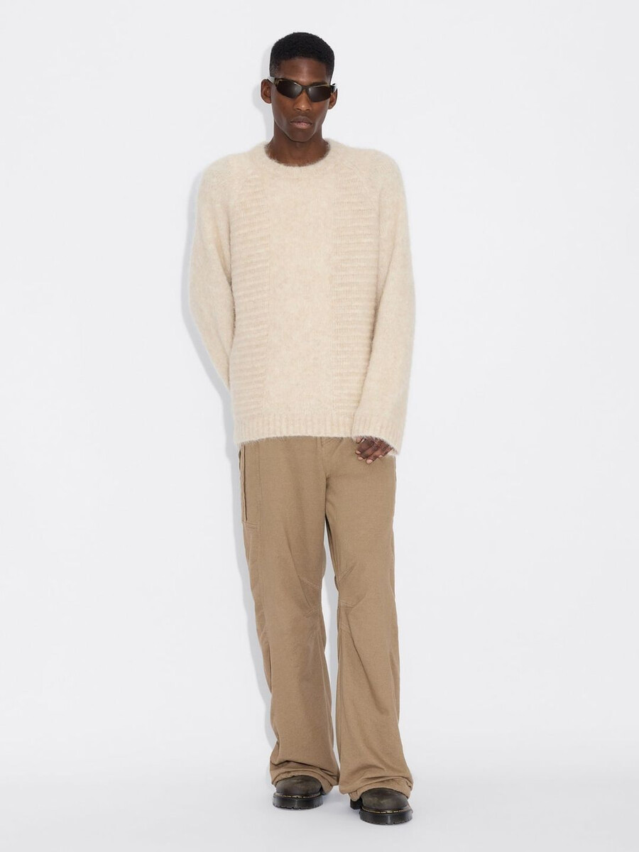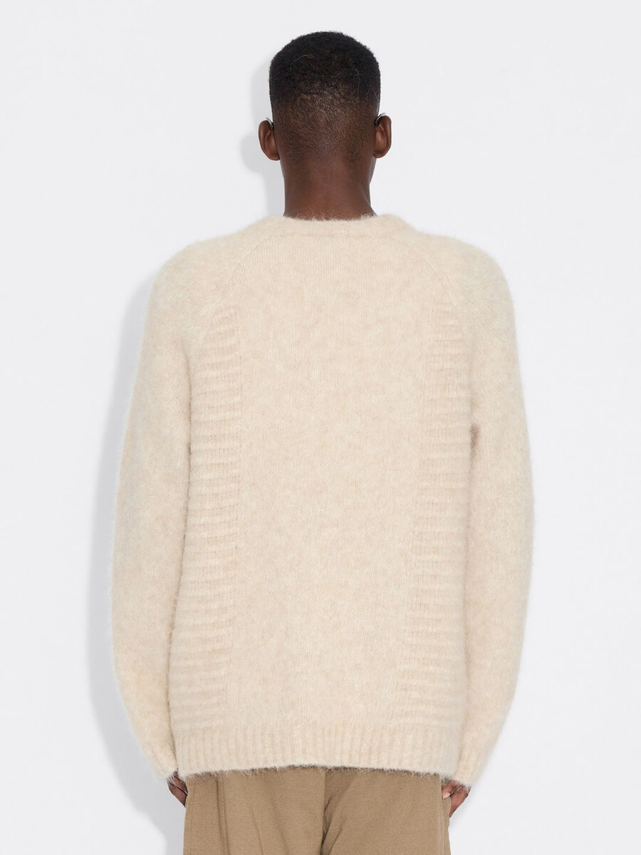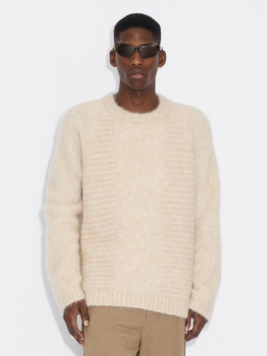 Il maglione Data è realizzato in morbida maglia di misto alpaca. Ha un design squadrato che presenta una serie di tecniche e motivi di lavorazione a maglia diversi e presenta maniche aderenti.