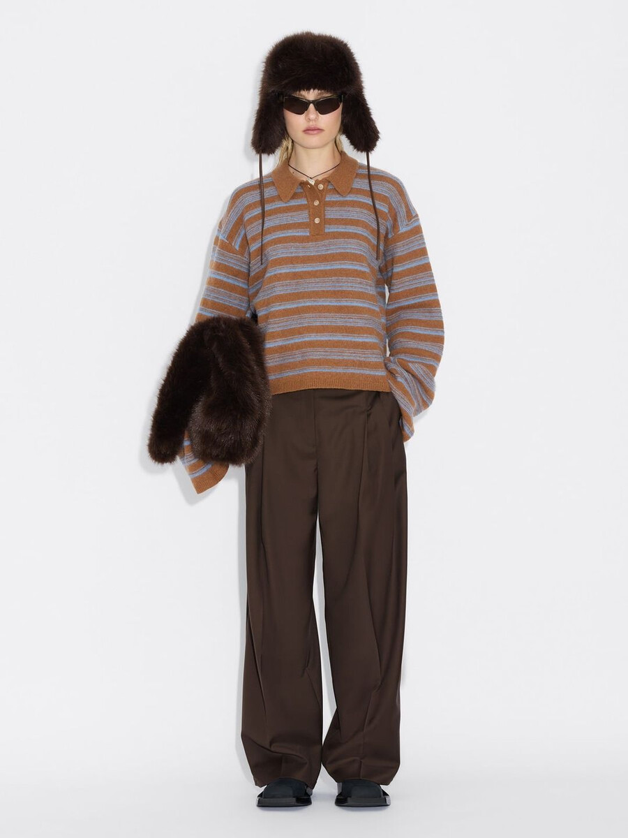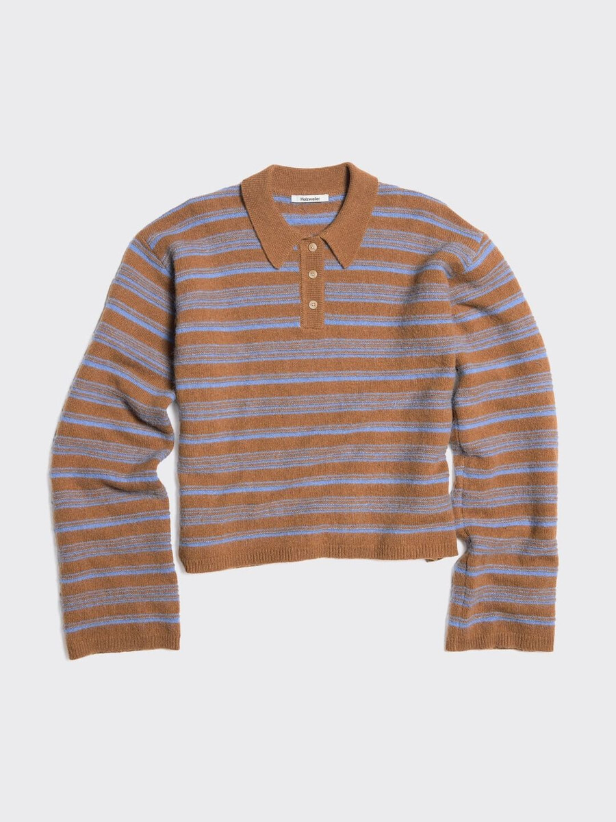 La polo in lana Olivia è realizzata in una piacevole maglia a righe e offre una vestibilità comoda. Presenta un colletto polo con bottoni e maniche a campana.