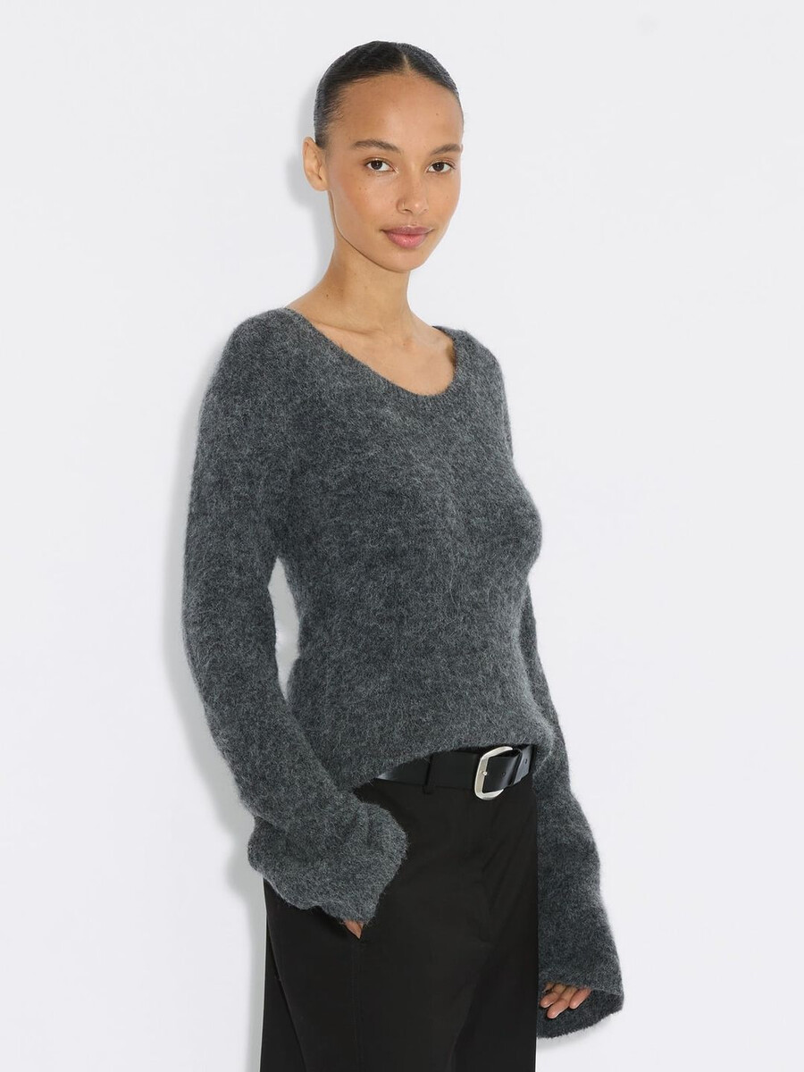 Il maglione soffice Fure aggiunge morbidezza a qualsiasi look. Non solo grazie alla lavorazione in misto alpaca, dalla mano morbidissima, ma anche ai morbidi bordi arrotondati attorno allo scollo e alle cuciture. Un capolavoro di eleganza e comfort, questo maglione a maniche lunghe dalla vestibilità slim è l’accessorio perfetto e senza tempo da indossare ogni giorno. Completa il look con la minigonna soffice Fure.