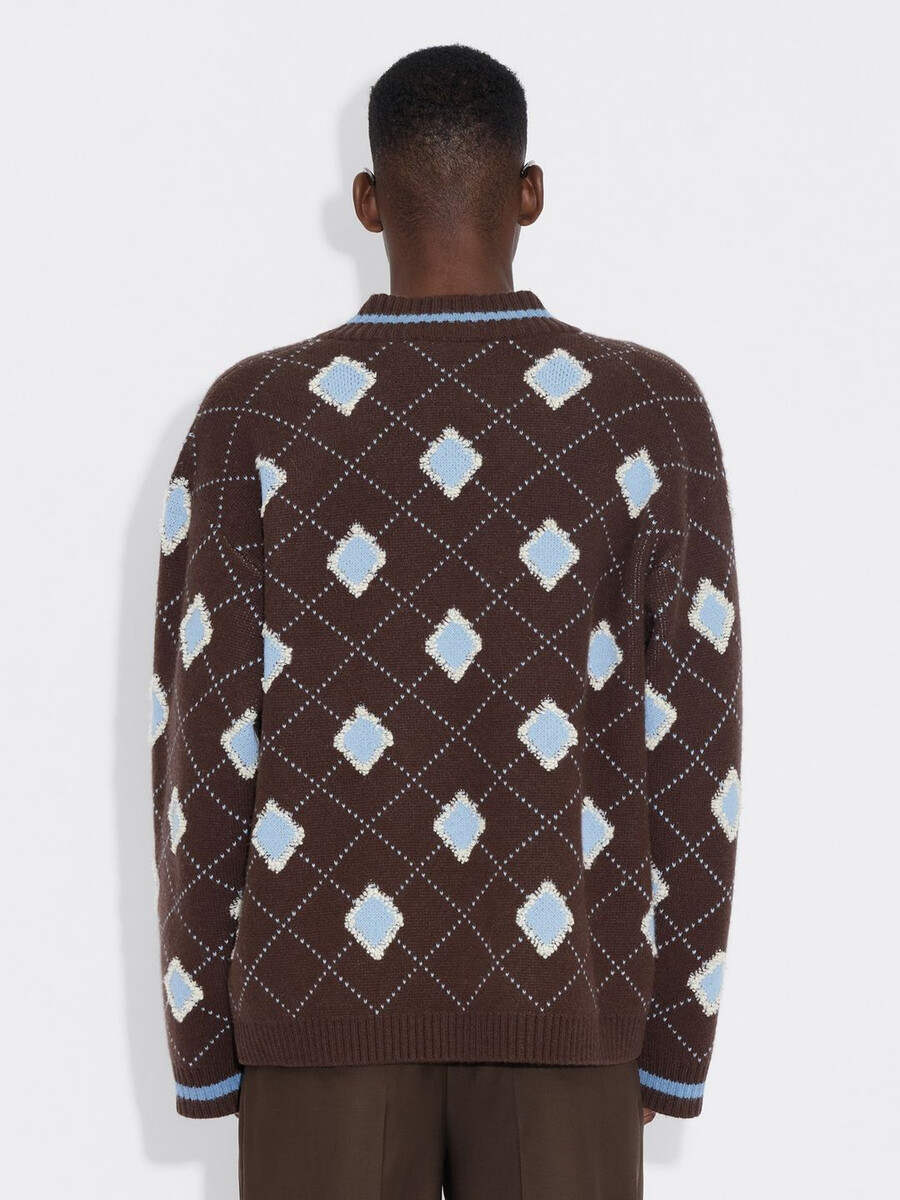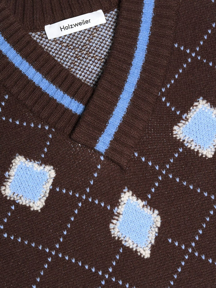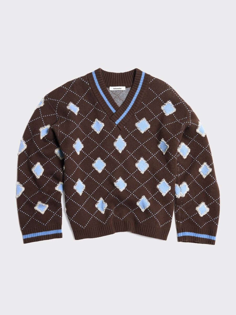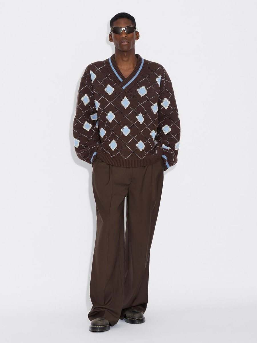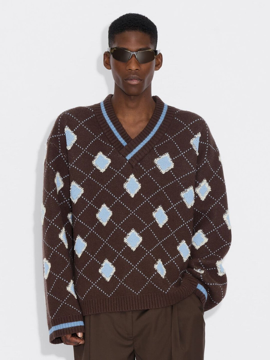 Il maglione Palomar con scollo a V è realizzato in pura lana lavorata a maglia con il classico motivo Argyle. Dalla vestibilità oversize, è rifinito con bordi a coste isolanti.