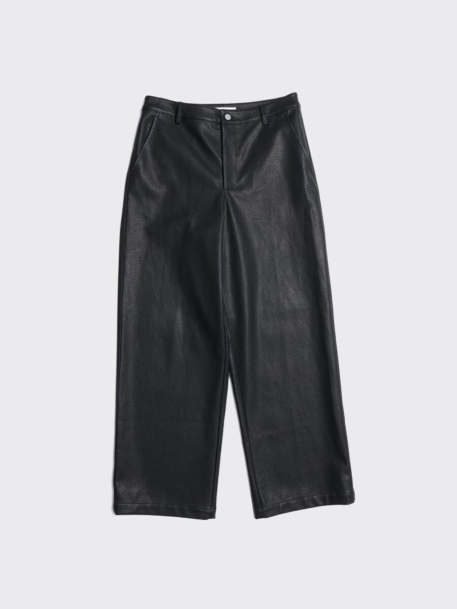 I pantaloni in similpelle Claes, dalla vestibilità comoda e con gambe larghe, presentano tasche anteriori, tasche posteriori a filetto e chiusura con bottoni. Da abbinare alla giacca in similpelle Claes coordinata.