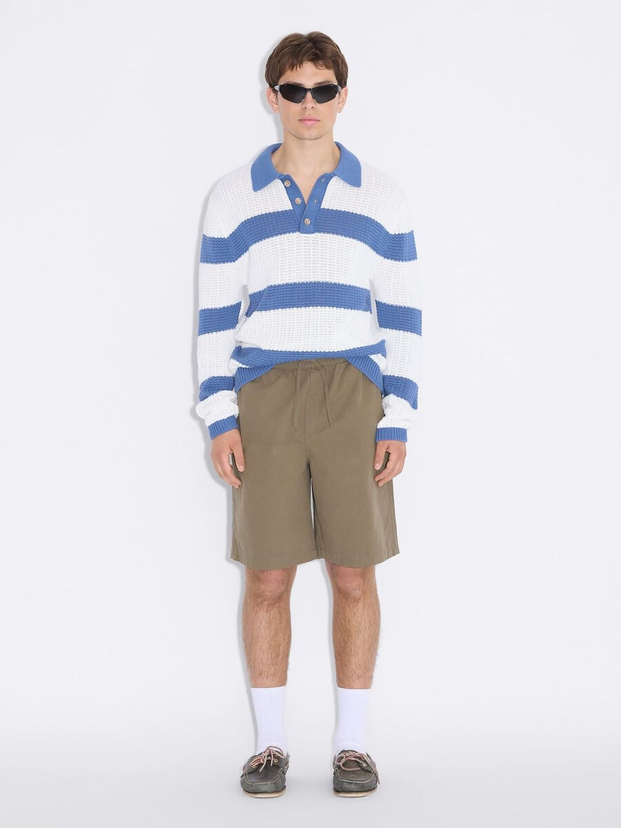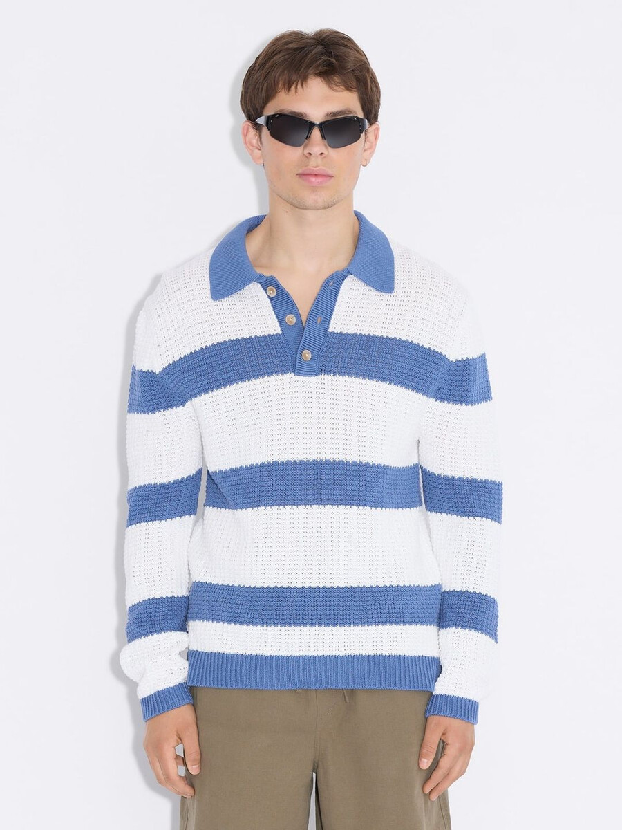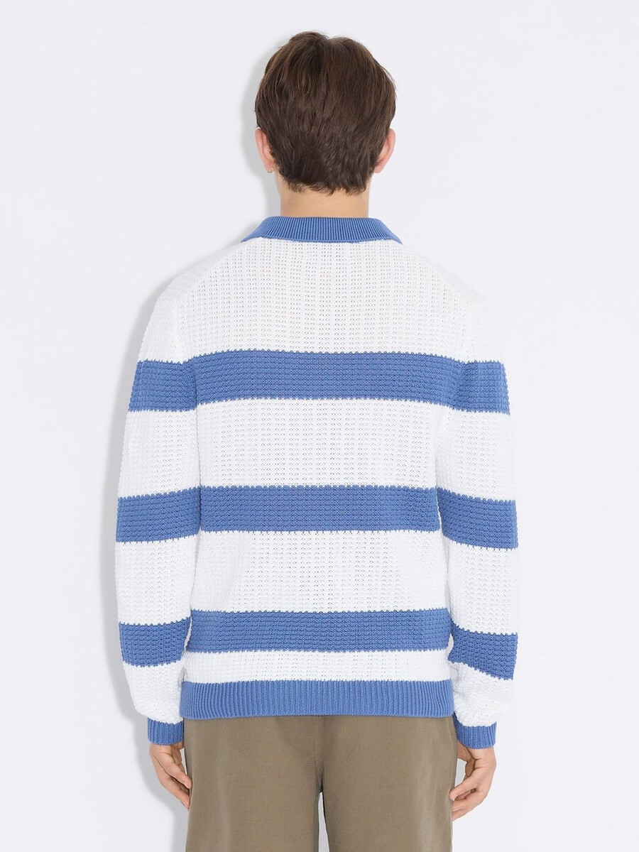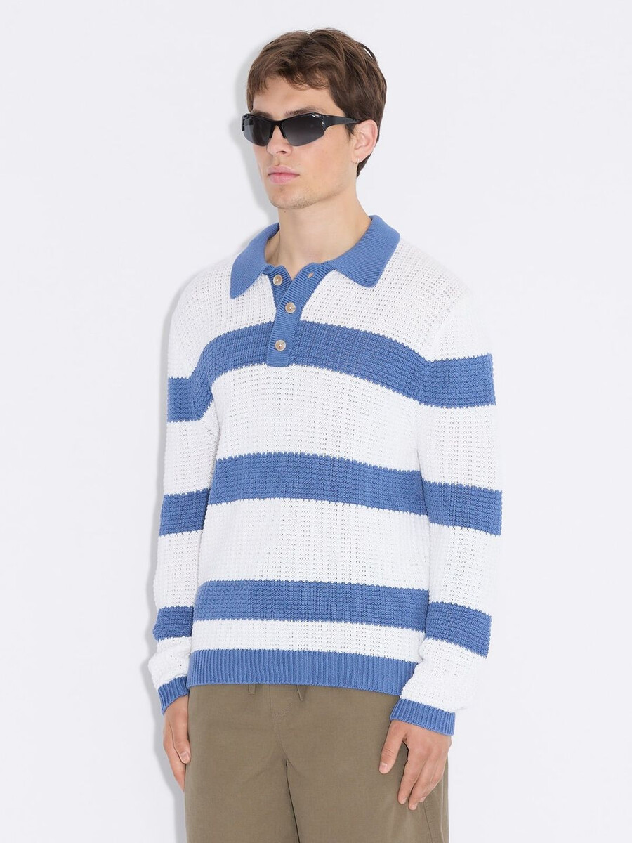 La polo Elio Striped è realizzata in puro cotone con lavorazione a maglia aperta e bordi a costine. Ha un colletto con bottoni e offre una vestibilità comoda.